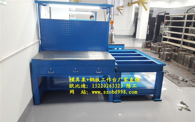 臺虎鉗重型鋼板桌車間鑄鐵維修鉗工臺實木桌面模具維修臺,東莞模具臺,珠海鋼板鉗工臺,鑄鐵鉗工臺鑄鐵鉗工制模工作臺 重型鋼板模具工作桌,鋼板模具桌,重型模具臺,飛模臺,省模臺,鐵板飛模工作臺,模具裝配工作桌,工作臺可配合掛板,上架,掛鉤及電器配件,組合各種不同的測試桌,并可以依據客戶之需求設計:打造特殊用途之工作臺,有效提高工作效力。